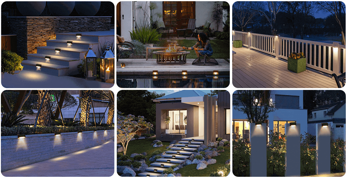 - These solar lights are ideal for illuminating stairs, paths, patios, gardens, and fences, and also for illuminating the closet door, backyard, driveway, garage, and exterior wall.
